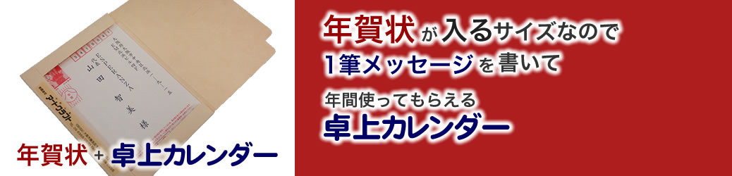 中身にハガキを入れることができるので、年賀状に一言添えて送ることで、年始のあいさつ&自社広告付きカレンダーに!